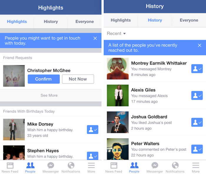 Si vous avez besoin de regarder rapidement la vie de quelqu’un sans patauger dans les mises à jour d’applications tierces, alors le flux “Highlights” pourrait être très bénéfique. La nouvelle section “People” comprend également une liste de contacts avec lesquels vous avez récemment interagi, selon TechCrunch. Facebook sait que la victoire sur les utilisateurs sur mobile est essentielle pour son succès, et cela ressemble à un mouvement dans cette direction.