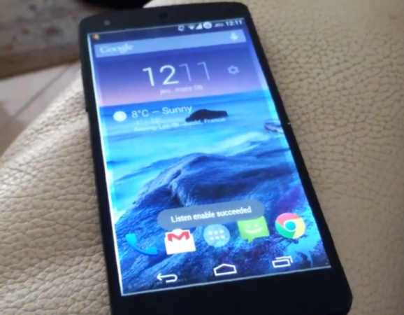Cette fonctionnalité nommée “Touchless Controls”, permettrait donc de lancer des commandes par la voix via l’assistant personnel de Google, Google Now. Mais, il s’avère que le Moto X ne serait pas le seul smartphone avec le matériel nécessaire pour être toujours à l’écoute. Comme le rapporte Android Authority, un développeur indépendant nommé Guillaume Lesniak a compris comment faire pour qu’un Nexus 5 puisse avoir le même comportement que le Moto X.