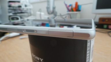 Sur le côté droit de l’appareil, le célèbre bouton on/off en aluminium, la signature de la gamme Xperia, et les boutons du volume juste en dessous. Plus bas, un bouton permettant de déclencher l’appareil photo.