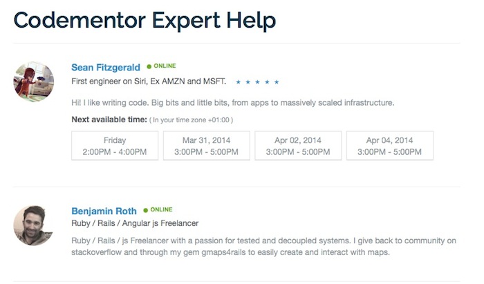 Il ajoute que les services de “microconsulting” de Codementor s’inscrivent dans la tendance de l’aide à la demande illustrée par Google Helpouts et Mayday d’Amazon. Codementor cible ses services aux gens qui souhaitent apprendre à coder, ainsi que les entreprises qui veulent embaucher des experts pour quelques heures afin de former des ingénieurs ou résoudre les problèmes.