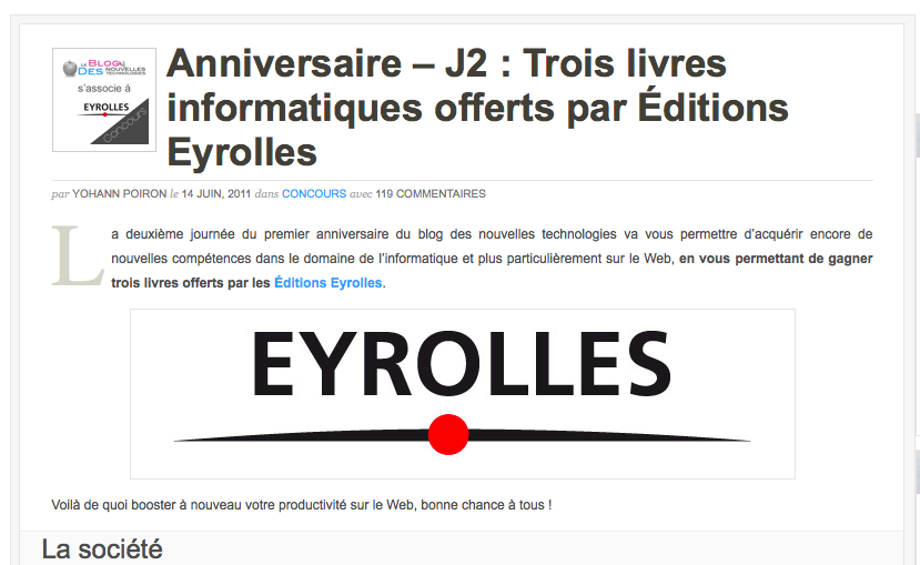 Chaque matin à 8h était publié l’article du concours, avec une présentation de la société ou des auteurs, du ou des cadeau(x) à gagner et enfin un paragraphe décrivant la manière d’y participer. Ce travail d’article n’est pas à négliger. En effet, c’est sur ce dernier que vos lecteurs vont savoir ce que vous offrez. Il est important de détailler chaque cadeau, mais aussi le mode de participation. Dans certains de mes concours je demandais qu’un commentaire précis soit inscrit par le participant.
