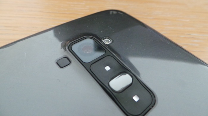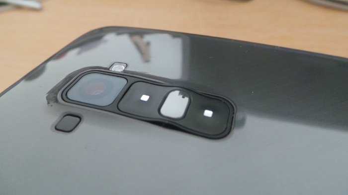 Le châssis est en plastique, et le dos a une finition lisse qui n’aide pas vraiment à l’adhérence. Comme je l’ai mentionné plus tôt, LG affirme que le dos à une particularité d’auto-guérison. Ceci n’est vrai que jusqu’à un certain point. Alors que j’ai tenté quelques égratignures avec mes clés, en quelques heures, les marques ont complètement disparu. Mais, je pense qu’avec une égratignure profonde, dont un précédent blogueur a du tenter, celle-ci sera là pour de bon – il y a sans doute une fine couche sur laquelle les marques vont s’estomper, mais une fois plus profond vous pouvez être sûr que les traces resteront.