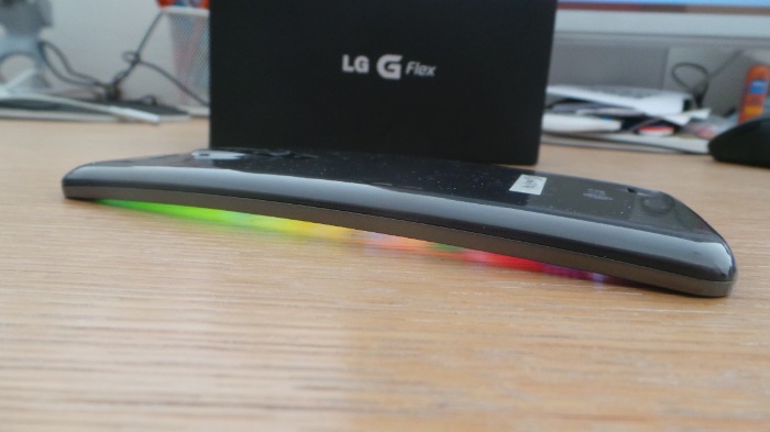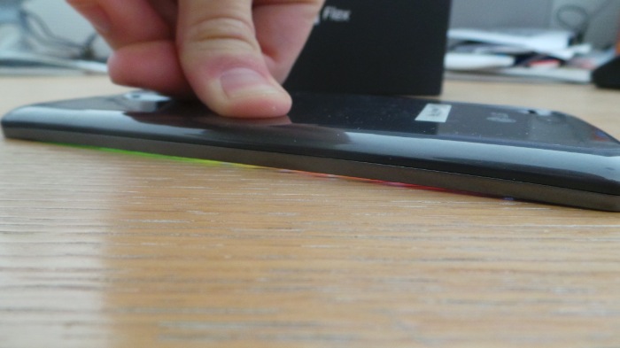 Il existe deux principaux arguments de vente pour le G Flex. Tout d’abord, il a une forme incurvée. Si un écran courbé n’est pas suffisant pour se démarquer de la foule, vous pouvez craner en aplatissant le smartphone sur une surface plane. Cela nécessite une bonne dose de punch, et une fois fait le smartphone retrouvera sa courbure une fois que vous relâchez la pression – bien évidemment il ne s’agit-là que d’une “option”, mais n’est pas quelque chose qui devra être réalisé au quotidien. L’autre force du smartphone est sa coque “auto-guérison”, dont je parlerai plus tard.
