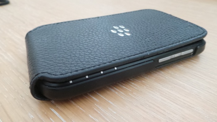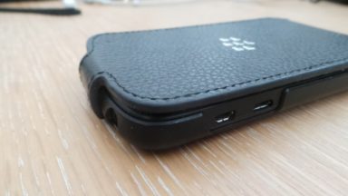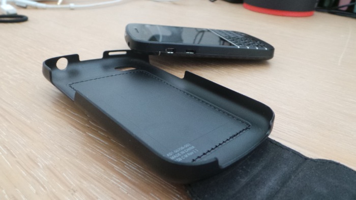 La coque est faite d’un plastique rigide qui s’adapte bien à l’arrière et les côtés de votre Q10 . Les coins sont très bien protégés et les boutons et les ports facilement accessibles. Un rabat en cuir se replie sur l’avant de l’appareil et s’accroche, en gardant votre Q10 sain et sauf à l’intérieur. Le volet a un support en microfibre, si bien que vous n’aurez pas à vous soucier de quoi que ce soit sur l’écran de votre Q10, notamment si ce dernier venait faire une mauvaise rencontre.