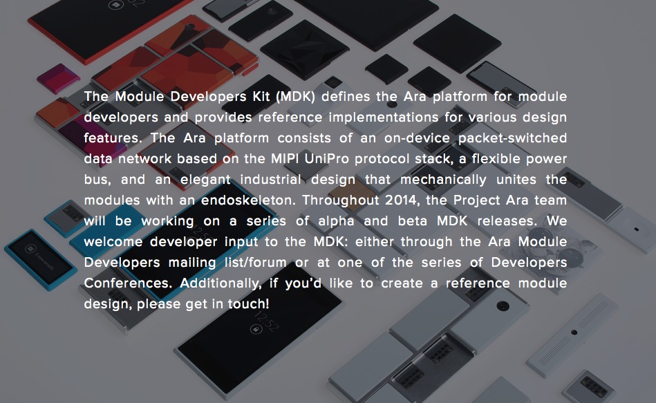 Alors que Google a travaillé sur le projet depuis un certain temps, et le géant de la recherche ne prévoit que de vendre l’endosquelette en lui-même. La société espère que d’autres compagnies fournissent des modules individuels. Maintenant, Google a publié le premier MDK, Module Developers Kit, pour décrire la façon dont ces modules s’assemblent pour former un smartphone.