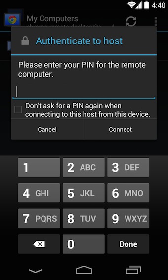 Lancez l’application mobile et vous verrez une liste d’ordinateurs compatibles. Choisissez en un, entrez votre code de sécurité, et vous pouvez contrôler à distance votre ordinateur de bureau à l’aide de commandes tactiles. Vous devez saisir du texte ? Il suffit de taper sur l’icône de clavier afin de faire apparaître le clavier à l’écran de votre appareil mobile.