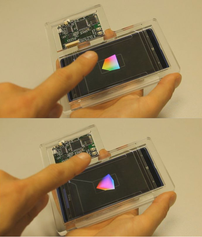 La technologie encore sans nom est en mesure de détecter la main d’une personne quand celle-ci flotte au-dessus d’un écran de smartphone.