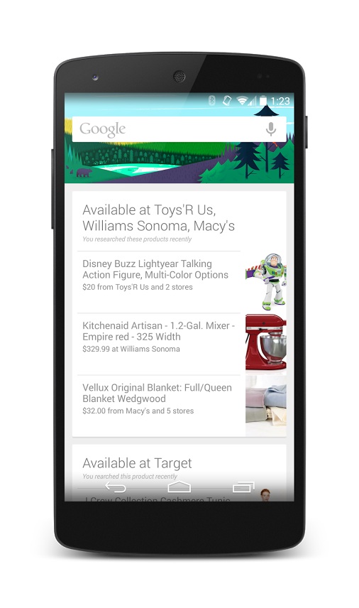 Google Now a été mis à jour afin de permettre aux propriétaires de smartphones Android, de recevoir des notifications sur les produits dans les alentours d’une boutique sur un produit qui a été recherché par le même compte.