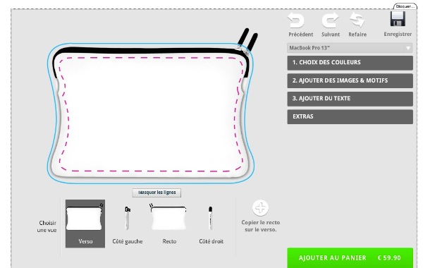 Pour 60 euros la version portable de 13 pouces, vous pouvez personnaliser votre achat avec un nombre presque infini de couleurs et de variations motifs, le tout contrôlé par un outil d’édition en ligne simple sur le site Web de Caseable.