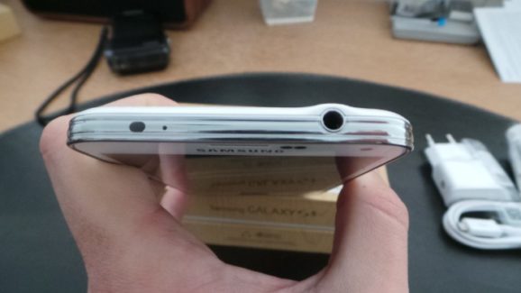 Le smartphone est juste un brin plus grand que le Galaxy S4 – l’écran Super AMOLED est passé à 5,1 pouces. Les bords du smartphone semblent être un peu plus grands que ce qui se fait aujourd’hui sur le marché, notamment si l’on compare ces derniers à ceux du LG G2, mais ce n’est pas non plus une catastrophe.