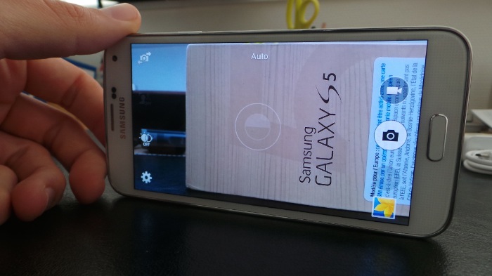 Le Galaxy S5 dispose d’une caméra arrière de 16 mégapixels avec double flash LED et un grand nombre de modes de prise de vue, mais Samsung se concentre sur une poignée de nouvelles fonctionnalités. Quant à la qualité de l’image, je vais réserver mon jugement jusqu’à ce que je passe un peu plus de temps avec l’appareil. Quoiqu’il en soit, les photos prises dans ma petite démo avait l’air superbes sur l’écran du Galaxy S5, avec une vitesse de déclenchement très rapide.
