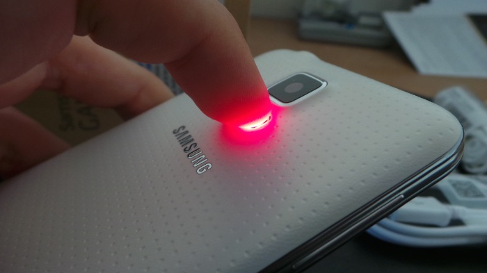 En outre, il y a un autre capteur sous la caméra qui va vous permettre de mesurer … votre fréquence cardiaque lorsqu’elle est utilisée avec l’application S Health. Maintenez votre doigt sur le flash une lumière rouge va alors s’activer, ce qui permet au téléphone de surveiller votre rythme cardiaque. Et bien sûr vous pouvez suivre tout cela au fil du temps depuis l’application, qui, comme sur le GS4, est conçue pour être votre centre de santé et de remise en forme sur votre smartphone.