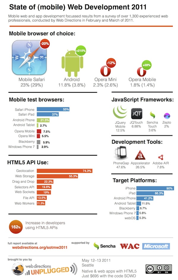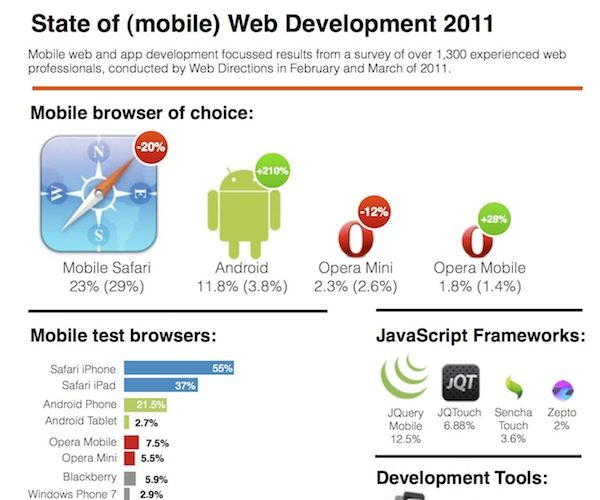 Il s’agit d’un des premiers rapports sur l’état du développement Web mobile, qui se concentre sur le Web mobile et les différents aspects du développement d’applications. Ce rapport a été produit à la suite d’une enquête menée en Février 2011 par Web Directions, dont plus de 1300 développeurs Web professionnels et créateurs ont répondu. Web Directions a déjà réalisé de telles enquêtes en 2008 et 2010.