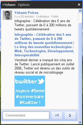 Vous pouvez commenter les messages des autres utilisateurs ainsi que réaliser un “+1” lorsque vous les ouvrez.