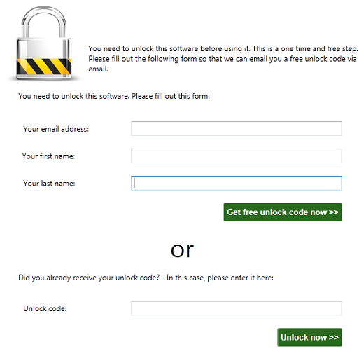 Afin d’utiliser GClient, vous devrez soumettre votre adresse mail pour recevoir un code de déverrouillage gratuit, que vous recevrez immédiatement.