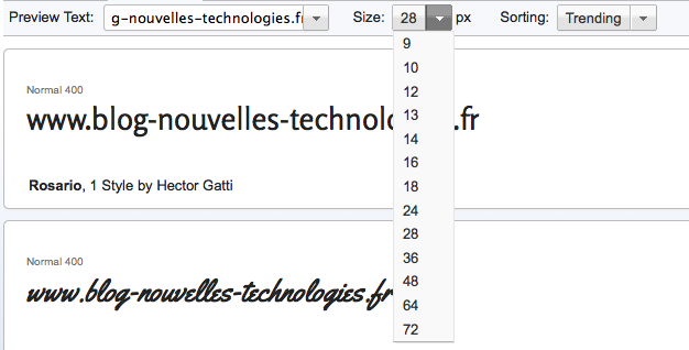 L’aperçu de la police peut également être personnalisé afin d’avoir la visualisation du texte (par exemple, vous recherchez une police pour votre projet) que vous avez imaginée ou qui vous semble adaptée à votre site, contenu.