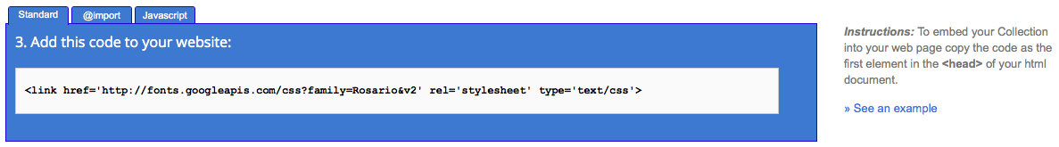 <link href=’http://fonts.googleapis.com/css?family=Rosario&v2′ rel=’stylesheet’>