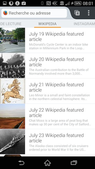 Mozilla a sorti une nouvelle fonctionnalité au sein de Firefox pour Android qui vous permet de jouer avec des “écrans” personnalisés sur l’écran d’accueil du navigateur web. Ainsi, au lieu de simplement regarder votre historique, vos sites fréquemment visités et une liste de lecture, vous pouvez dorénavant ajouter des écrans pour divers services et plateformes en ligne, tels que Vimeo, Instagram, Wikipedia, ou d’autres sites.
