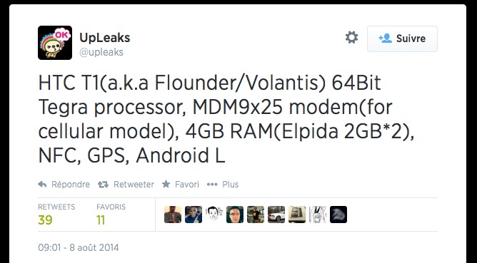 Alors que l’on entend depuis plusieurs mois que HTC travaille sur la prochaine tablette Nexus pour Google, aujourd’hui cette tablette vient de faire son apparition sur un site de certification sud-coréenne, l’équivalent de la traditionnelle FCC américaine, et UpLeaks prétend avoir quelques nouveaux détails sur la tablette.