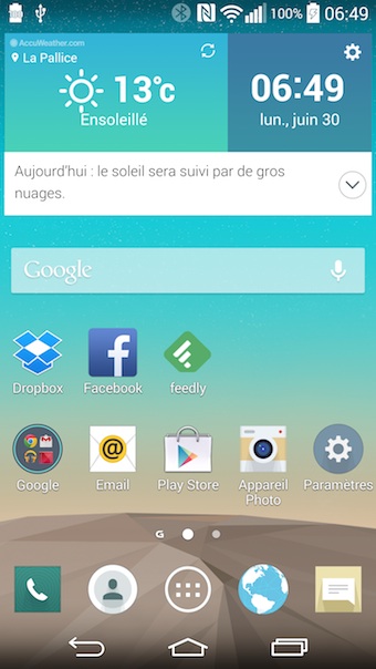 Plus que toute autre chose, LG a vraiment travailler sur sa lente et triste surcouche Android. Avec le G3, la firme coréenne a tout simplement fait une refonte complète, entraînant avec elle une interface plus “plate”, une tendance initiée par iOS 7. Parmi les changements notables, des icônes plates, des couleurs neutres – évitant les couleurs primaires – et de simples repères visuels. Mais, alors que les tons pastel donnent une harmonie au smartphone, et puisque l’on est sur Android, il est trop facile de remplir votre écran d’accueil avec des icônes qui ne correspondent pas au style de LG.