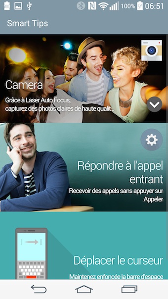 Il y a trois nouvelles applications pré-installées dans le G3. LG Health, Smart Tips et Smart Notice. Bien que cette dernière soit plus ou moins utile, elle vous permettra néanmoins de recevoir des rappels sur les anniversaires, les appels manqués, et d’ajouter de nouveaux contacts à votre carnet d’adresses. Alors qu’avant son lancement, nous avions entendu parler de sa capacité prédictive, rappelant les fonctionnalités de Google Now, je dois avouer qu’elle n’a jamais été en capacité de remplacer le service de Google. Bien évidemment, elle pourrait devenir plus utile au fil du temps, mais à l’heure actuelle LG a encore besoin de travailler dessus.