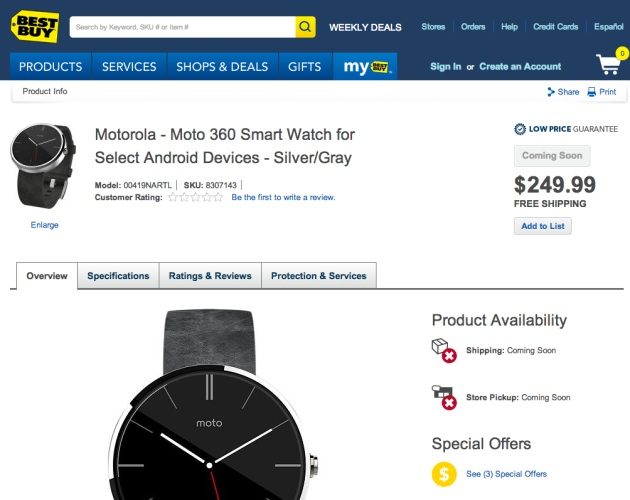 Au milieu des détails entourant la future Moto 360 de Motorola qui ont été affichés sur la toile par Best Buy, un petit point intrigant est passé largement inaperçu. Si la fiche technique est à la fois exacte et authentique, le dispositif portable de Motorola pourrait être l’une des premières smartwatches qui peut directement se connecter à Internet via une connexion Wi-fi.