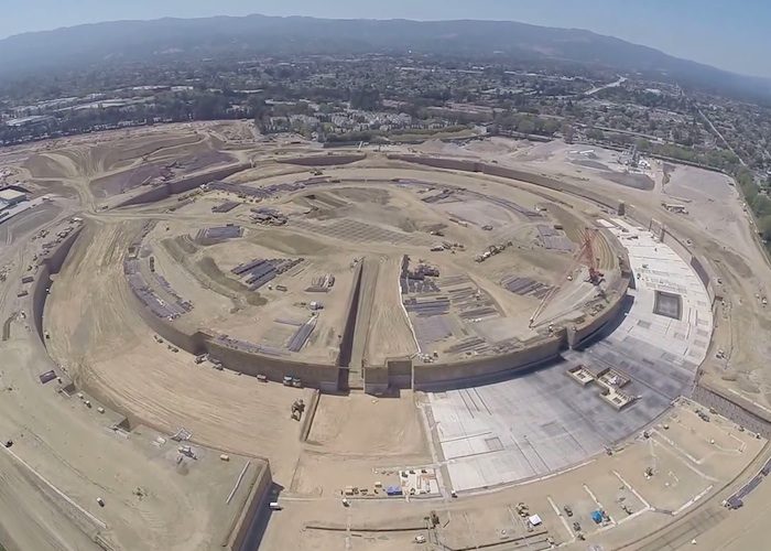 Mettre un drone pour filmer le site a été l’un des moyens de contourner les contrôles assez rigides d’Apple sur le site, qui a vu la fermeture des trottoirs, et ériger des murs autour de l’ensemble du site pour empêcher les regards indiscrets à zieuter ce que va être le futur campus.