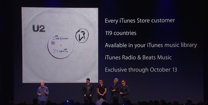 Vous avez été ravi par l’iPhone 6 et la Watch ? Non ? Que dire alors lorsque Tim Cook et Bono ont mentionné main dans la main qu’il était possible de télécharger le nouvel album du groupe U2, Songs of Innocence, gratuitement sur iTunes dans le cadre de la keynote d’Apple ce mardi ?