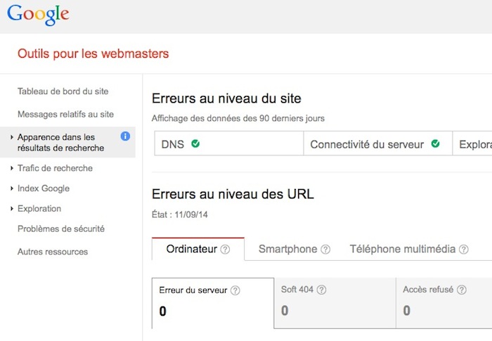 - marquer les erreurs de crawl comme étant “corrigées” (cela ne change pas la façon dont elles sont traités, mais peut aider à simplifier votre interface)