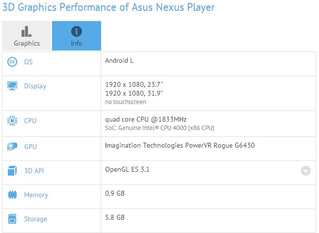 Un dispositif nommé Asus Nexus Play a récemment fait son apparition dans les benchmarks de GFXBench.