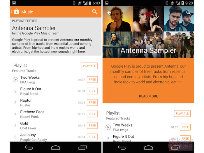 Comme vous pouvez le voir ci-dessous, la conception de la page de Antenna Sampler est beaucoup plus attrayante dans le Play Store 5.0 (à droite).
