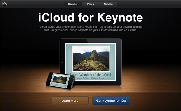 Apple a également ajouté le support pour les documents iWork qui donne accès aux fichiers provenant des applications Pages, Numbers et Keynote via icloud. La version d’iWork de iCloud.com n’est actuellement remplie que de pages de garde pour le moment.