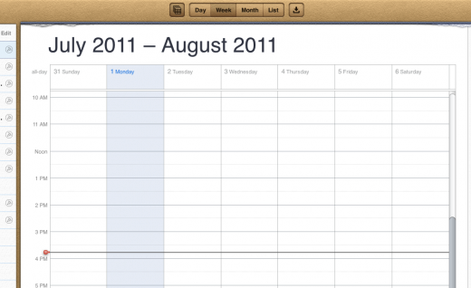Tout comme Mail, l’application de calendrier a été mise à jour, ressemblant ainsi à la version de l’iPad, avec son imitation distinctive d’un calendrier de bureau en cuir. Vue le nombre de personnes qui ont préféré revenir à l’ancienne interface sur OS X Lion, je me demande s’il s’agit d’une bonne idée…