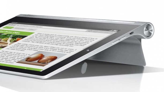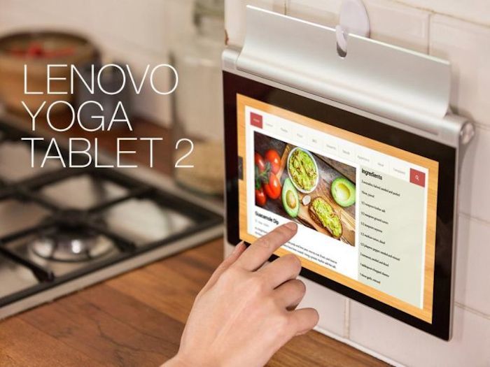 Les nouvelles tablettes Lenovo Yoga de 8 et 10 pouces offrent toutes deux un écran d’une résolution de 1920 x 1200 pixels, et une batterie qui, selon le constructeur chinois, permettrait de disposer d’une grosse autonomie. De plus, une béquille améliorée vous permet de positionner la tablette dans une variété d’angles. En plus du mode “veille”, vous pouvez maintenant utiliser la béquille en mode “accrocher”, dans le but d’accrocher la tablette dans une cuisine, un bureau ou autre environnement. En effet, Lenovo a ajouté un petit trou au milieu de la béquille qui vous permet de l’accrocher comme un tableau.
