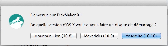 - Lancez DiskMaker X, choisissez Yosemite dans la liste d’options, et suivez les directives