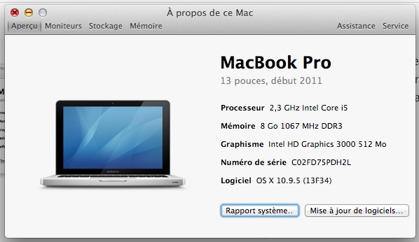 En outre, vous pouvez vérifier la version d’OS X que vous utilisez sur ce même écran.Vous pouvez évoluer vers OS X Yosemite à partir des versions suivantes du système d’exploitation :