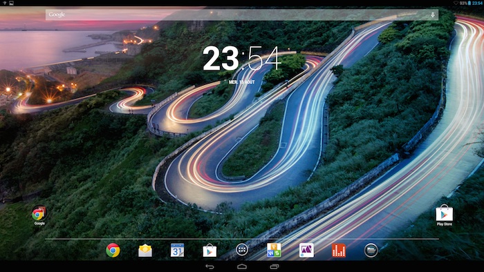 Ici, vous trouverez trois ports USB, dont l’un est de l’USB 3.0, un port HDMI, une prise jack combo audio-microphone, et un port pour une carte micro-SD. Je suis très heureux de voir l’intégration de ces trois ports USB, puisque généralement les tablettes et les ordinateurs portables Android n’en comprennent qu’un seul, voire deux dans le meilleur des cas. La connectivité se présente sous la forme de Wi-fi 802.11 b/g/n, du Bluetooth 4.0, ce qui s’avère standard.