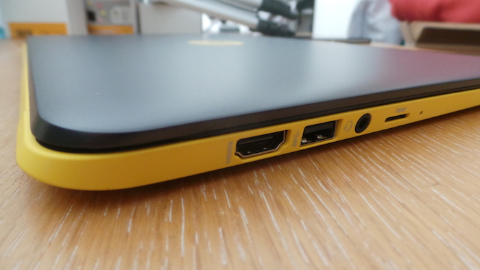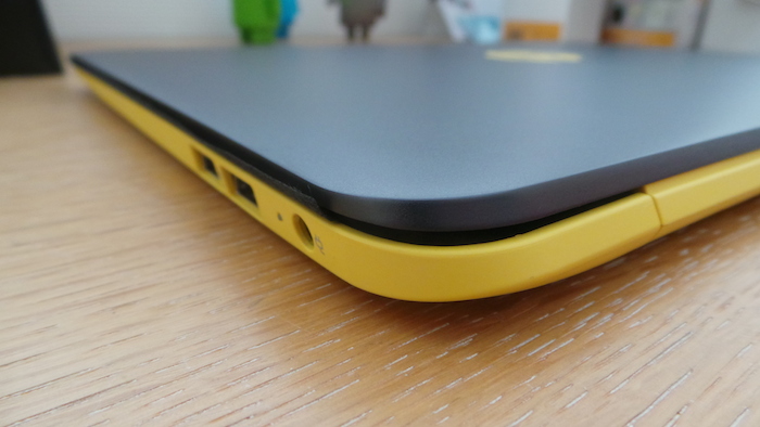 Le SlateBook combine un écran avec un châssis de couleur noir à l’intérieur, et jaune à l’extérieur. Oui, jaune, et c’est seulement le coloris disponible.