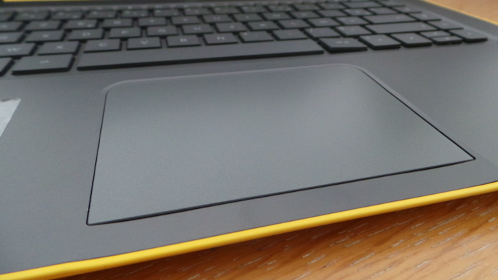 Le touchpad, qui mesure 10,16 centimètres de large et 6,35 centimètres de haut, est très bon. Même le plus léger contact est accueilli par une réponse instantanée, et la plupart des gestes multi-touch fonctionnent aussi bien avec le touchpad qu’ils peuvent l’être sur l’écran tactile.