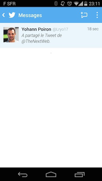 La personne qui reçoit votre tweet partagé recevra ensuite une notification push, et le tweet lui-même s’affichera directement dans la conversation.