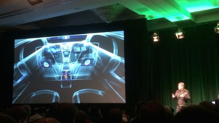 “Nous croyons que la future voiture va embarquer une quantité énorme de puissance de calcul”, déclare NVIDIA lors de sa conférence de presse. Les futures voitures auront “plus de puissance de calcul que tout ce que vous possédez aujourd’hui”. Dans le monde imaginaire de NVIDIA, votre prochaine voiture aura un grand nombre d’écrans. “Nous imaginons ces écrans remplacer bon nombre des capacités actuelles de votre voiture. Par exemple, votre miroir pourrait devenir un écran intelligent”, poursuit la firme.