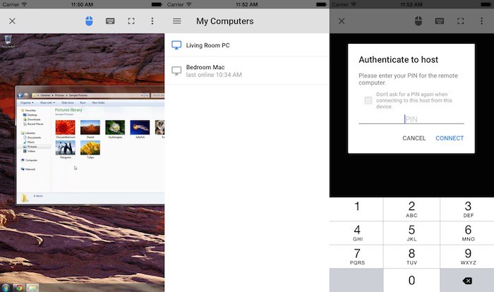 L’application gratuite est disponible sur l’App Store, et elle vous permet d’utiliser un appareil mobile afin de vous connecter à n’importe quel ordinateur Windows ou Mac qui a le navigateur Chrome installé.