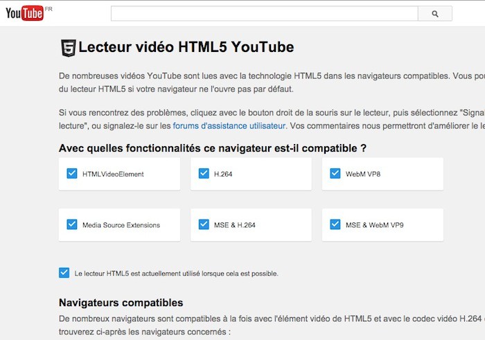 YouTube a travaillé dur depuis plusieurs années maintenant pour se débarrasser de l’ancien plug-in Web d’Adobe, et alors que l’ensemble du site a lentement migré pour se passer de Flash, aujourd’hui YouTube a annoncé qu’il va finalement pousser la lecture vidéo HTML5 par défaut. Les utilisateurs de Chrome, IE 11, Safari 8, et “les versions bêta de Firefox” n’auront plus besoin de Flash pour aller sur YouTube.