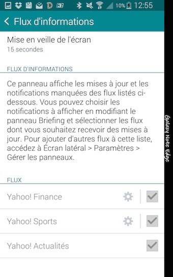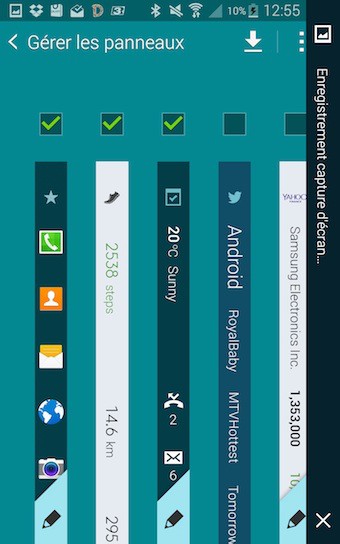 Les propres panneaux de Samsung, comme les alertes sur votre agenda et le soi-disant « panneau d’informations » sont plus attrayants et pratiques. Vous pouvez modifier votre panneau d’information pour n’afficher que les notifications et les informations que vous souhaitez avoir accès en tout temps. Il va afficher la météo, les notifications de vos e-mails, Facebook,Twitter et d’autres applications, de sorte que vous ne manquerez rien. Samsung vous permet de réorganiser vos panneaux dans le menu de paramètres dédiés, qui est accessible lorsque vous faites glisser la flèche en bas du bord incurvé.