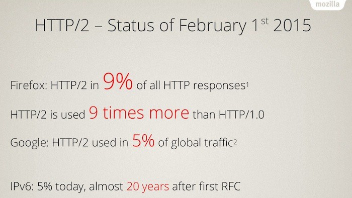 “HTTP est le protocole réseau fondamental qui alimente le web. La majorité des sites utilisent la version 1.1 de HTTP, qui a été défini en 1999. Beaucoup de choses ont changé sur le web depuis sa mise en œuvre, et une nouvelle version du protocole nommé HTTP/2 est bien sur la voie de la normalisation. Nous prévoyons de déployer graduellement le support pour HTTP/2 dans Chrome 40 dans les prochaines semaines”, précise Chris Bentzel, de Google.