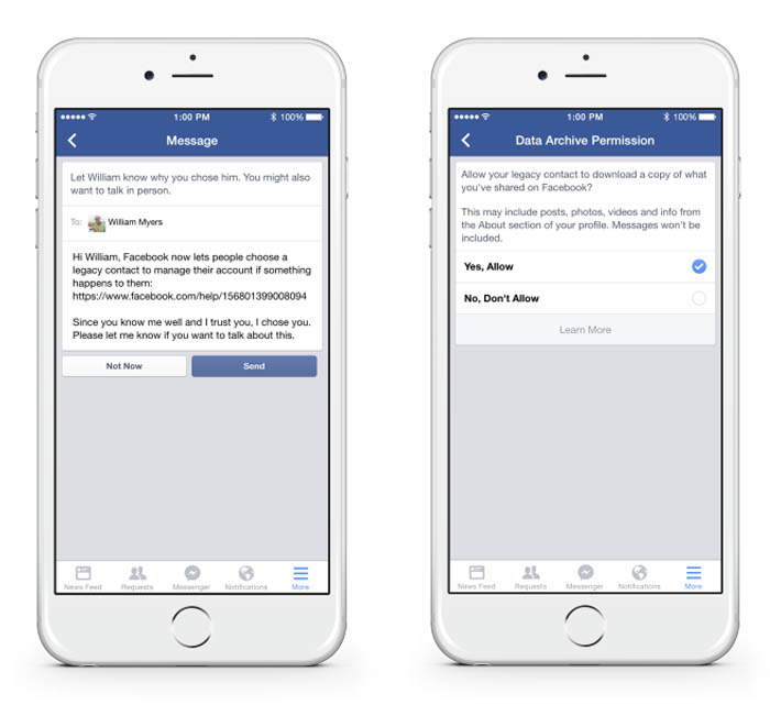 Cependant, puisque Facebook a gagné en popularité, c’est une question qui revient de plus en plus souvent. La précédente politique de Facebook laissait les membres de la famille des utilisateurs décédés, la possibilité de soumettre une demande pour “immortaliser” un profil (une sorte de “commémoration”). Aujourd’hui, Facebook fournit finalement aux utilisateurs davantage de contrôle sur leurs profils post mortem.