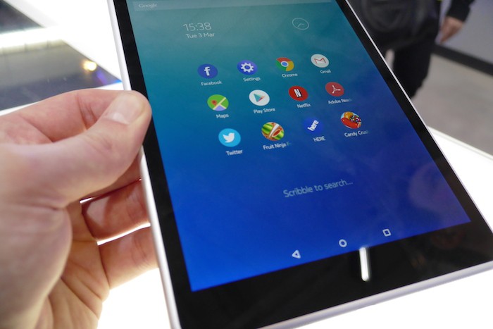 Alors qu’elle a déjà un look très premium, cela se poursuit lorsque l’on évoque l’écran. La résolution de 2 048 x 1 536 pixels, est aussi net que celle d’un iPad, et le panneau IPS permet une visualisation sur la plupart des angles. Malheureusement, il a été impossible de la sortir de l’extérieur de l’enceinte du MWC 2015, donc je n’ai pas été en mesure de juger de sa performance à la lumière du soleil. Mais en théorie, c’est un autre bonus de la technologie Zero Air Gap, qui supprime la couche d’air entre la dalle tactile et le module LCD, réduit les réflexions et facilite la lisibilité, même dans la lumière du jour.