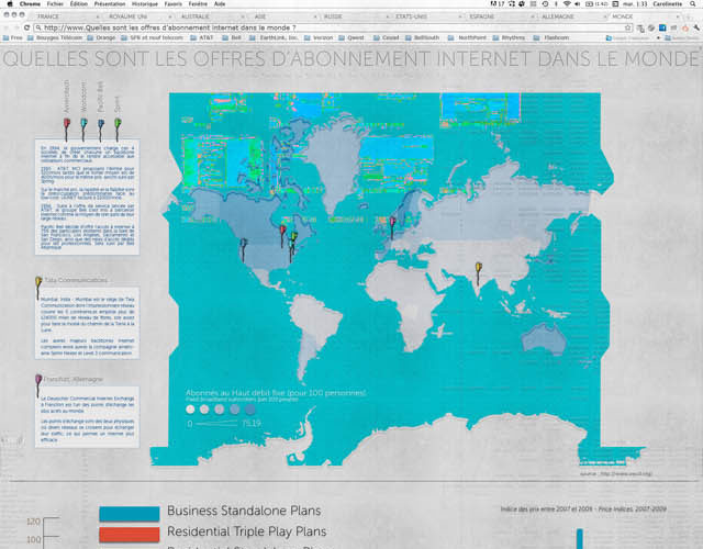 L’enquête est difficile car les chiffres ne sont pas si clairs. Je me suis donc concentrée notamment sur la formule de type Triple Play qui comme nous le savons est illimitée, à une vitesse de 20Mb/s en moyenne, et comprend Données+Tel+TV pour 30€ en France.