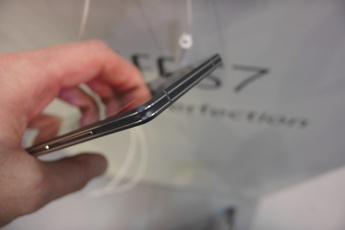 Les smartphones de Gionee ont toujours été très bien conçus, et le Elife S7 n’échappe pas à la règle. Les bords sont d’un plus bel effet, notamment avec un cerclage métallique. Cela donne du caractère au smartphone, avec une sensation beaucoup plus adhérente que le glissant et super léger Elife S5.1 qui se trouvait à ses côtés. Le châssis en alliage de magnésium et d’aluminium est pris en sandwich entre deux panneaux de verre Gorilla Glass 3. Alors oui, la coque arrière est un vrai nid à empreintes digitales, mais le smartphone est vraiment agréable en main.