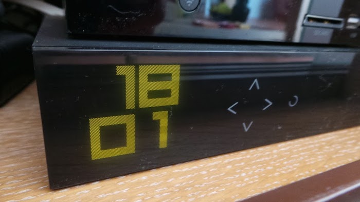 Concernant son design, on est très loin de la Freebox Révolution. En effet, la Server Freebox Mini opte pour une façade brillante noire, un simple logo freebox sur le côté droit de la façade avant. On va également disposer de touches directionnelles et le bouton “OK” (un cercle) en cas de besoin. Enfin, sachez que sur la gauche, les informations du menu s’afficheront, ainsi que l’heure.
